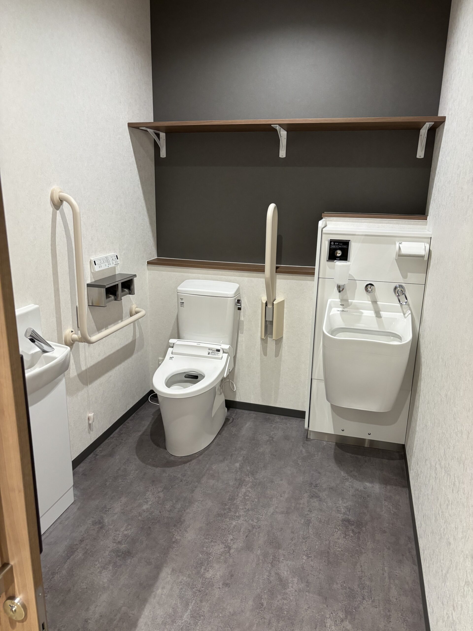 フロア内トイレは2か所に設置しています。脱衣所にもトイレ有り。